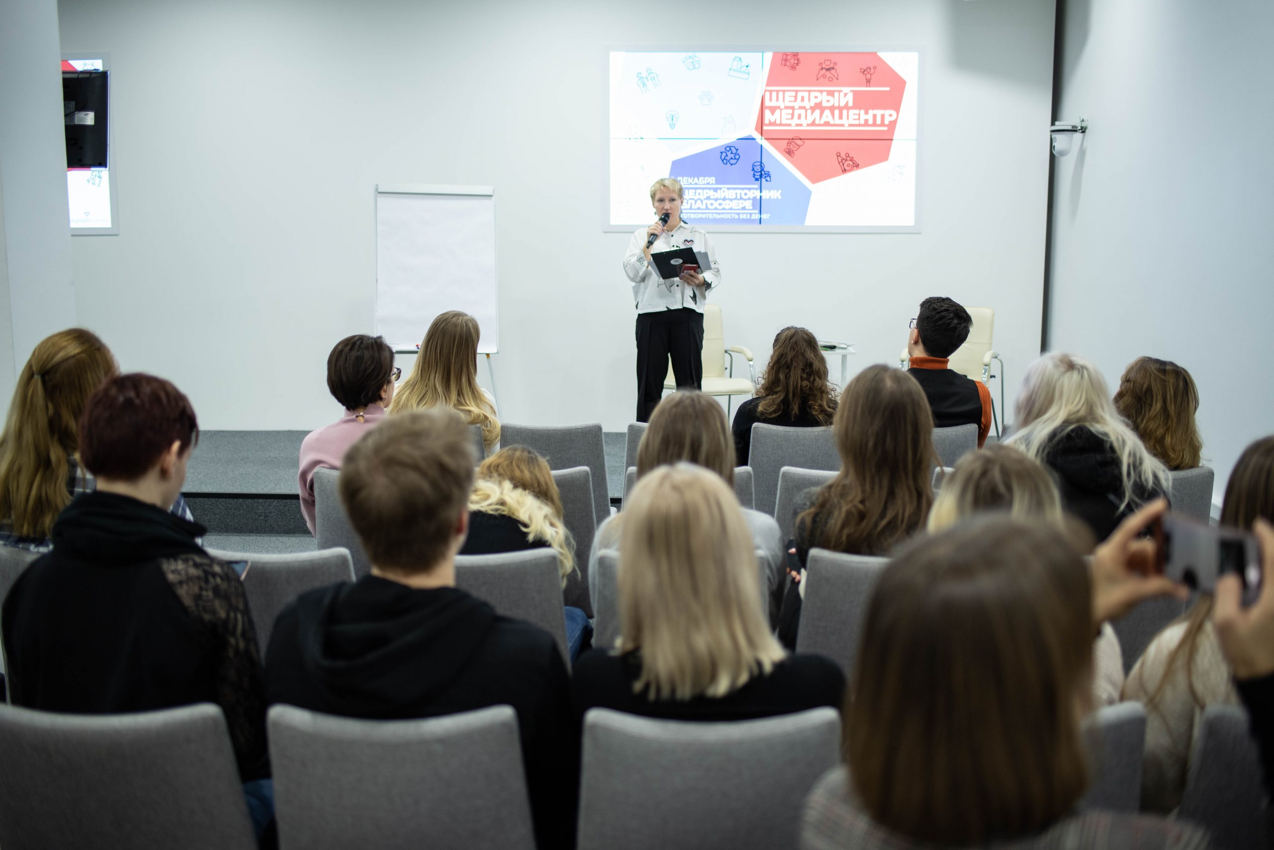 Студенты факультетов журналистики московских вузов (Московский государственный университет имени М.В.Ломоносова, Высшая школа кино и телевидения Останкино, Российский государственный социальный университет) смогли стать «щедрыми репортерами» благодаря акции «Щедрый медиацентр», которую в рамках фестиваля организовали совместно центр «Благосфера», Агентство социальной информации и журнал «Русский репортер». С утра студентов ждала редакционная планерка в «Благосфере» и мастер-класс от журналистов «Русского репортера». После планерки «щедрые репортеры» отправились по разным площадкам благотворительных акций, которые в этот день проводили в Москве вузы, некоммерческие организации и компании. Лучшие материалы студентов будут вскоре опубликованы на сайте Агентства социальной информации, а часть интервью с героями акций может появиться в рубрике «Карта сообществ» в журнале «Русский репортер».