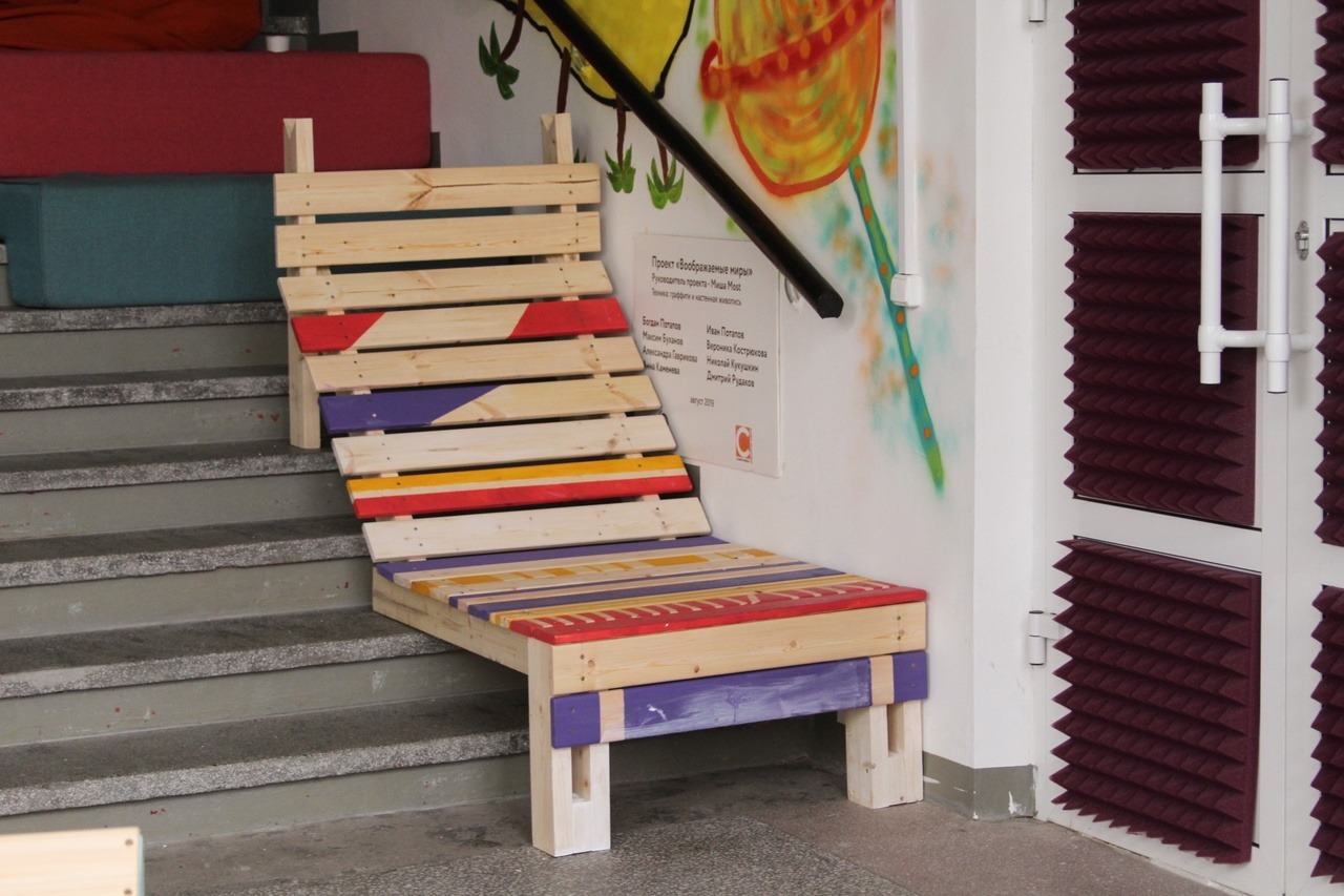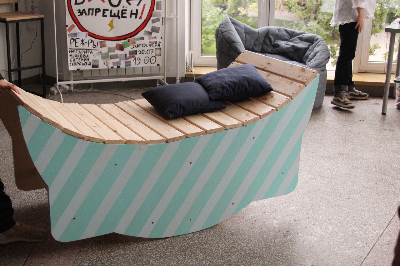 В Подростковой гостиной в Благосфере стало еще уютнее с новыми дизайнерскими предметами мебели и интерьера. Всего за четыре дня их сделали своими руками участники интенсива «Лаборатория урбанистики», который проходил с 21 по 24 августа.
