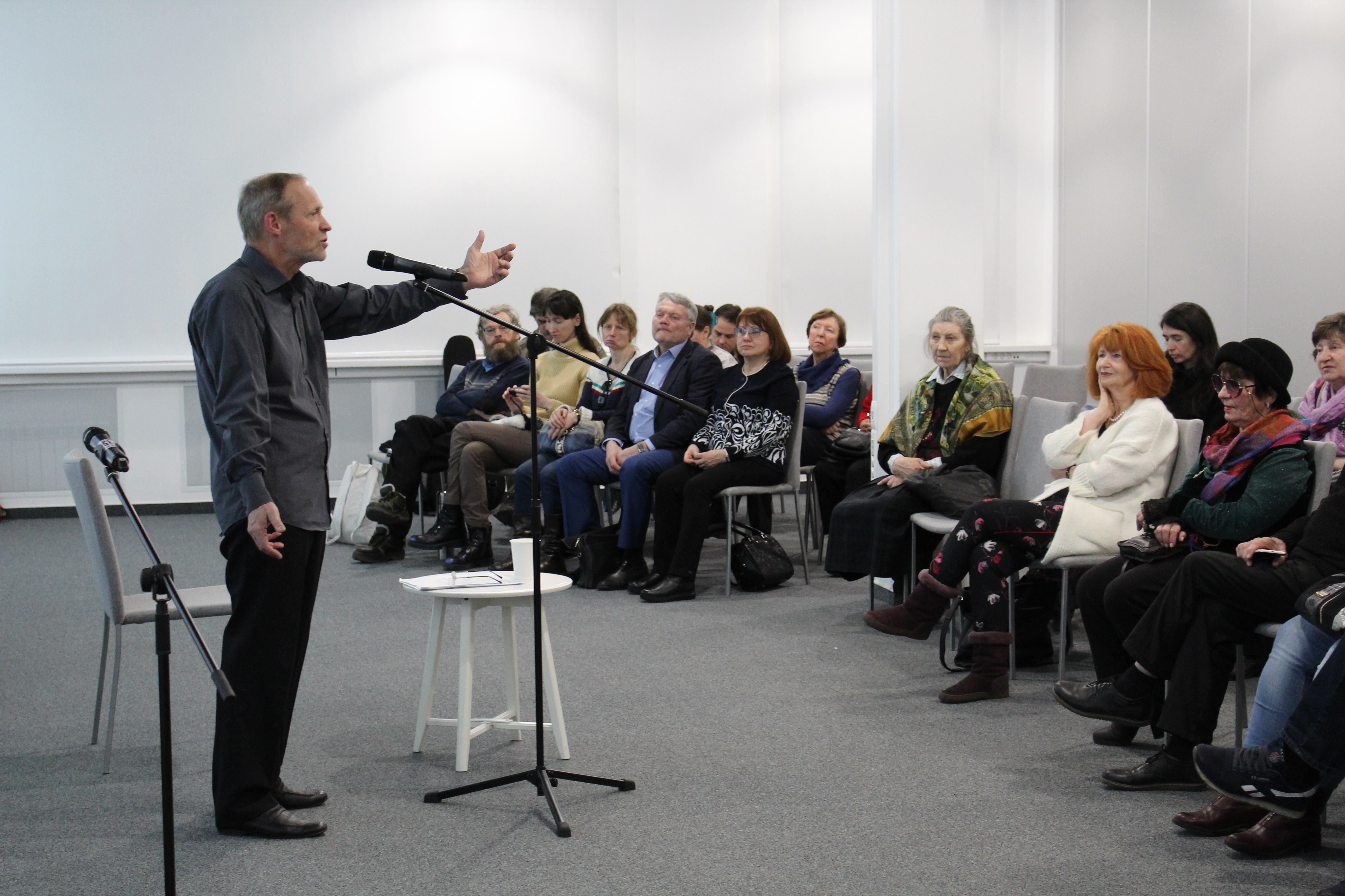 Затем был объявлен открытый микрофон. Несколько участников встречи выступили перед залом, прочитав свои любимые произведения Блока.
