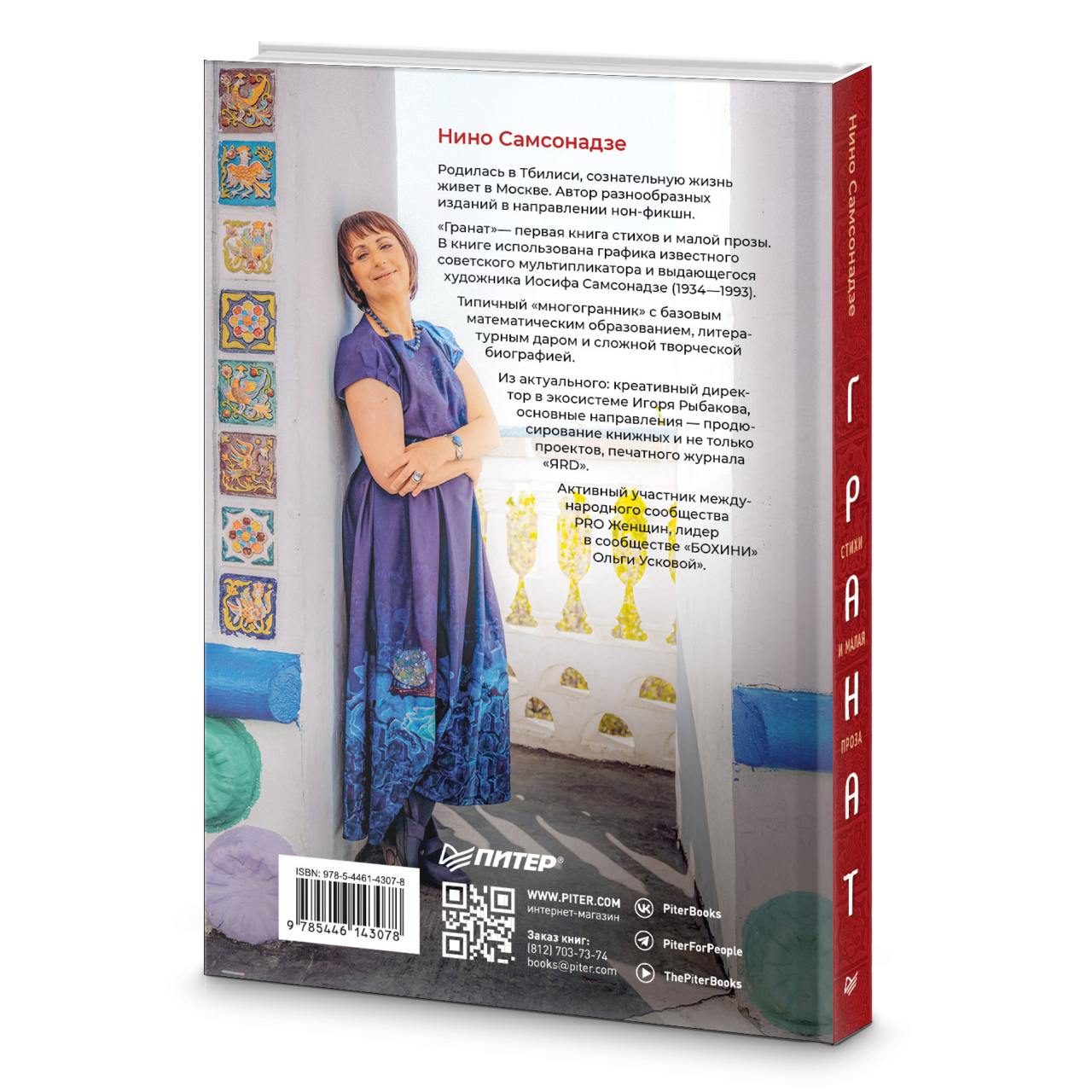 Нино Самсонадзе родилась в Тбилиси, всю свою сознательную жизнь проживает в Москве. Автор разнообразных книг в направлении нон-фикшн. «Гранат» – первый сборник стихов и малой прозы.