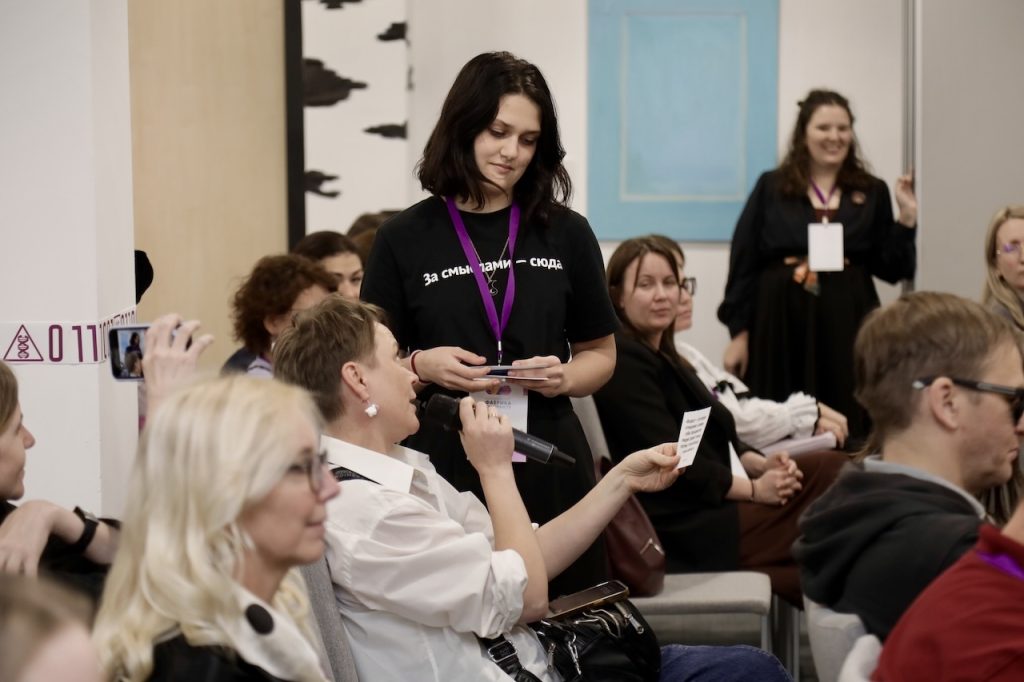 В перерывах между треками работала «Комната обратной связи», где можно было пообщаться с самими подростками и услышать их мнение о своем проекте или инициативе.