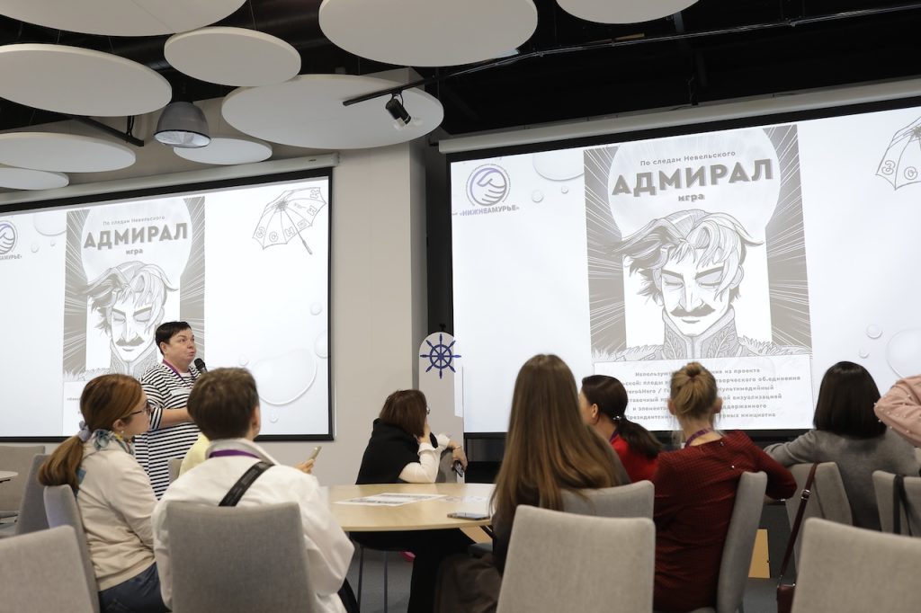 На площадке «Культурный досуг» познакомились с популярными в разных общественных пространствах форматах и выяснили, какие задачи они помогают решать. Например, в молодежном коворкинге «Зеленое место» в Николаевске-на-Амуре приобщают к истории края через интеллектуальную игру «Адмирал. По следам Невельского». С игрой познакомила координатор пространства Елена Касаткина.