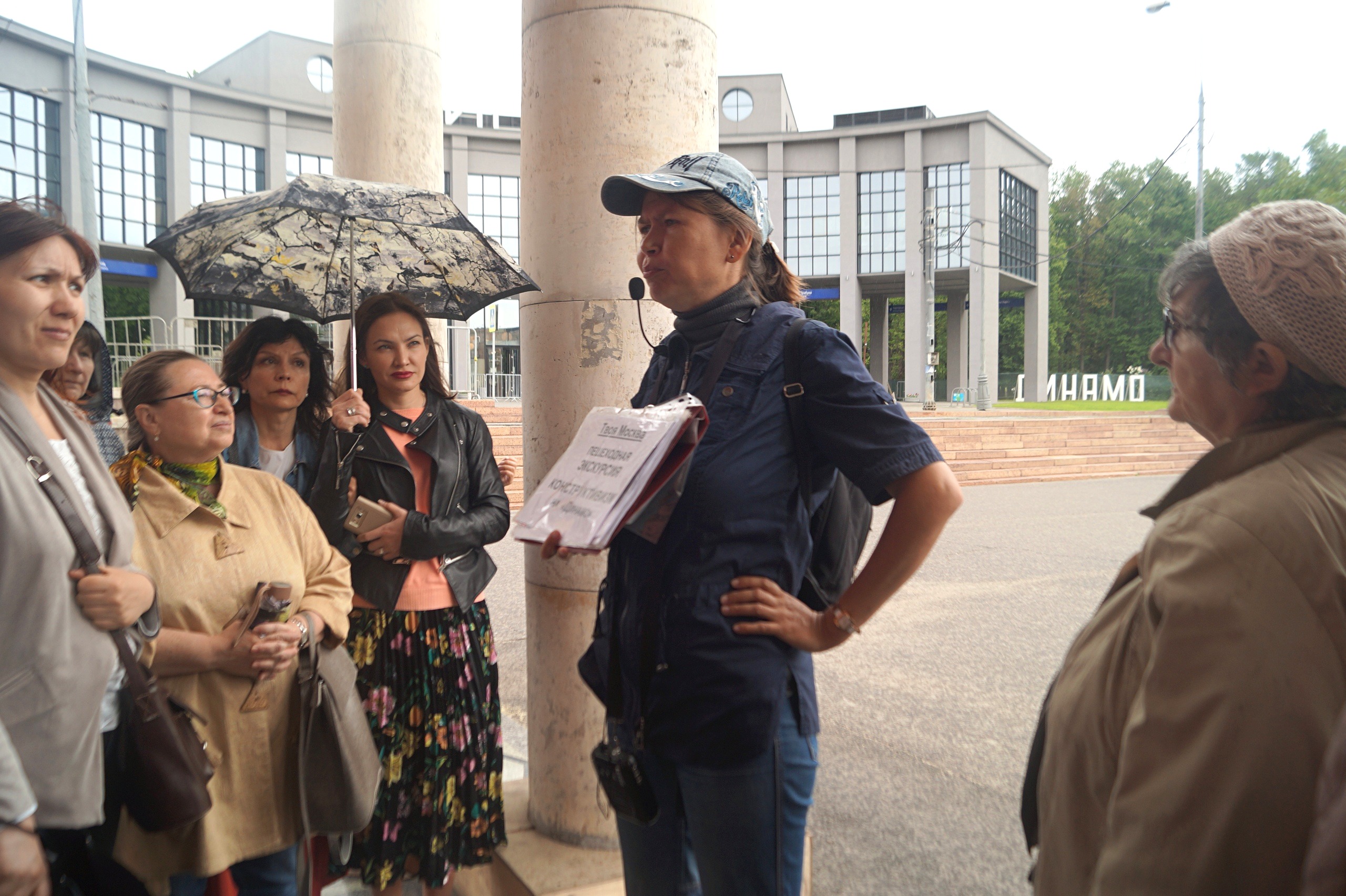 Затем экскурсовод показала стадион «Динамо» и памятник вратарю Льву Яшину. Экскурсанты узнали интересный факт: до 1956 года этот стадион, рассчитанный на 14 тысяч зрителей, был самым большим в стране. Его рекорд побил только стадион «Лужники».