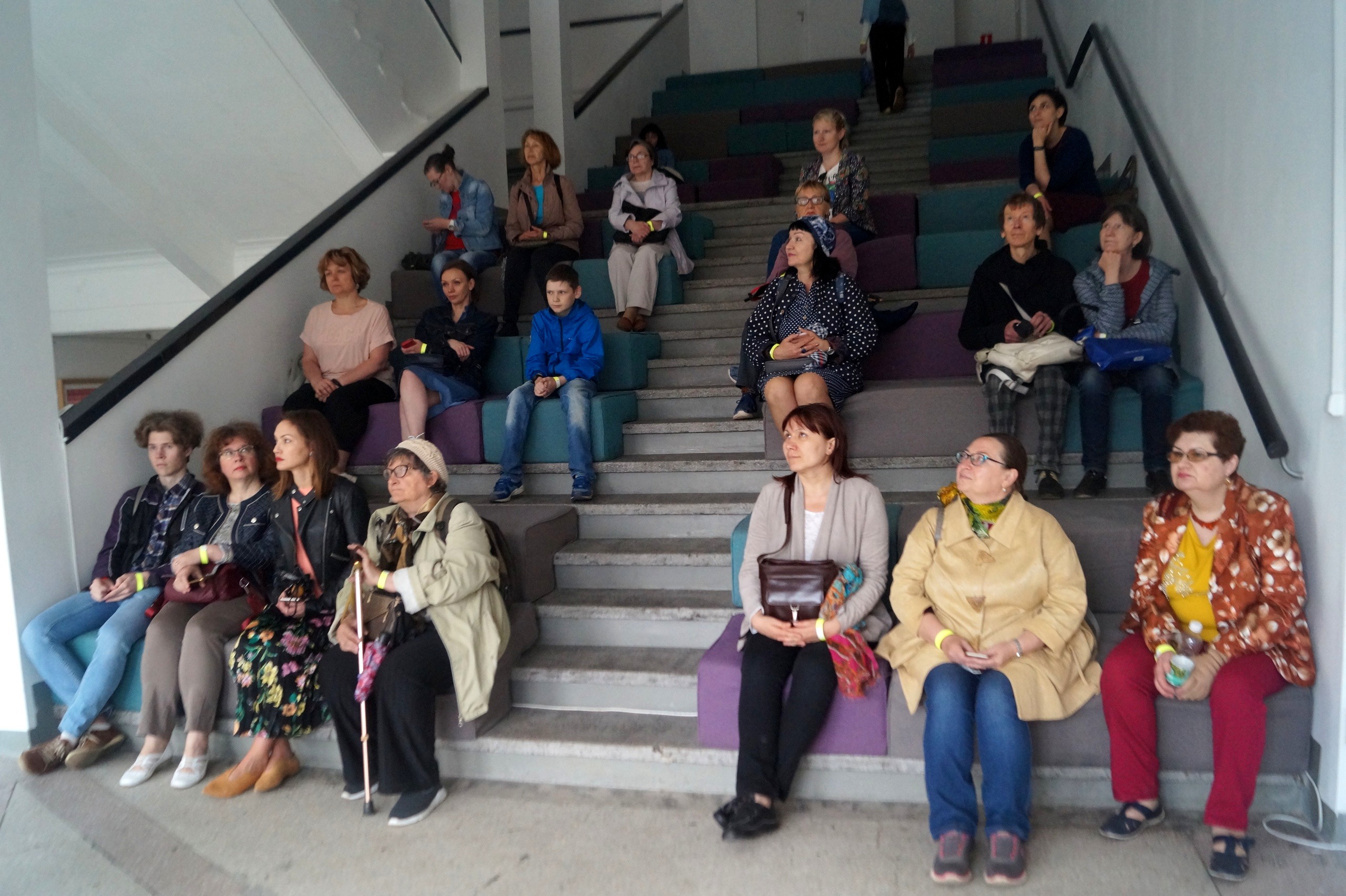 Ирина обратила внимание гостей на большие окна в здании: идеей конструктивистов было избавиться от стен и впустить в помещение больше света. Рассказала экскурсовод и про «перекрещивающиеся» лестницы, поднимаясь и спускаясь по которым можно пойти в нескольких направлениях: с помощью этого архитекторы 20-х годов пытались выразить идею освобождения человека, отсутствия границ.