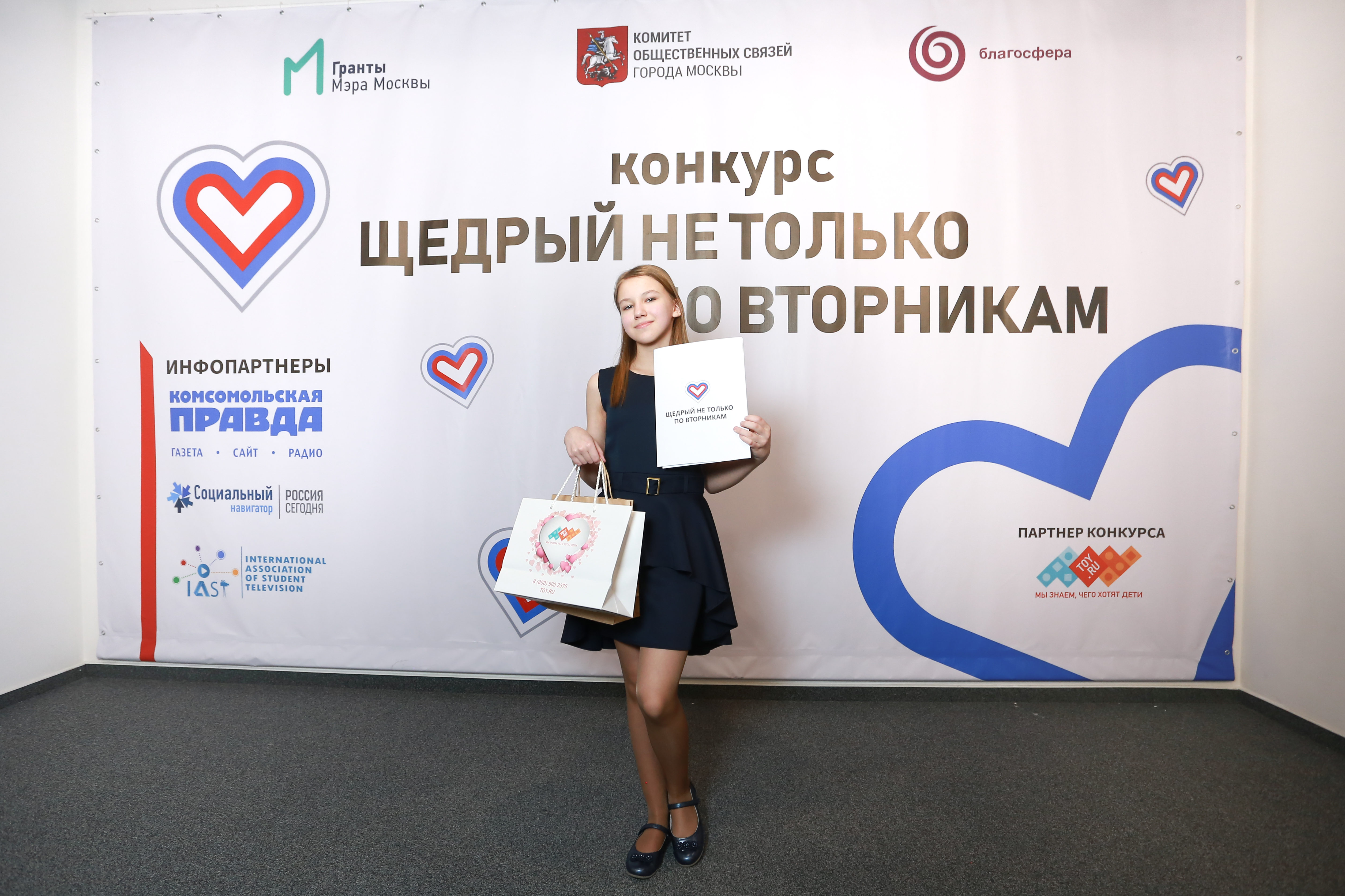 Младшим школьникам свои призы также вручил партнер конкурса – компания Toy.ru: самым юным волонтерам достались развивающие настольные игры. «Компания Toy.ru активно занимается благотворительностью, а «Благосфера» – известная площадка, которую мы всегда рады поддержать, — делится ассистент отдела маркетинга Екатерина Привалова. – Думаем, наши подарки пришлись по вкусу юным и талантливым волонтерам — победителям конкурса «Щедрый не только по вторникам»!».