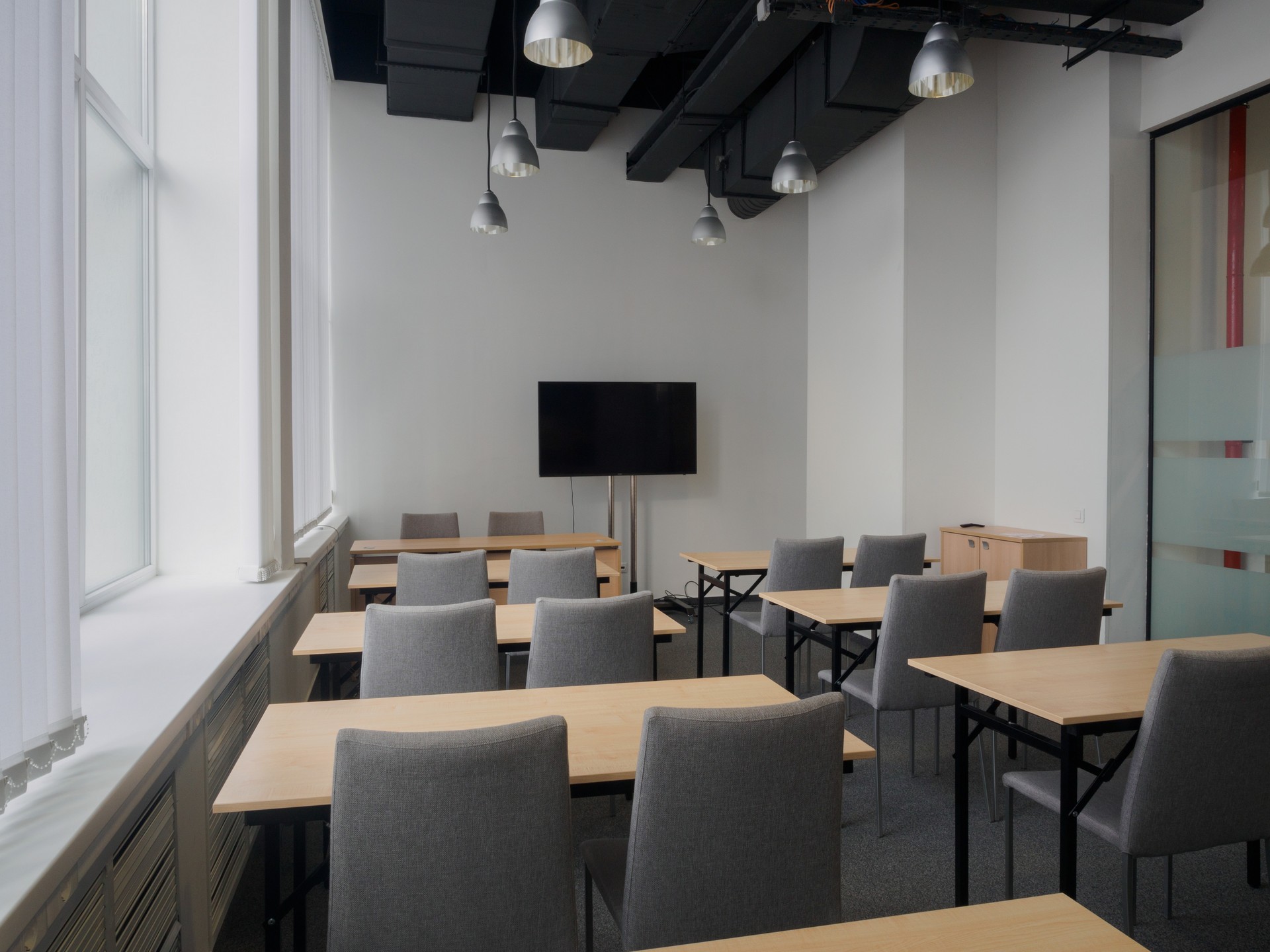 Большая переговорная Благосферы больше всего подходит для обучающих семинаров и небольших презентаций.